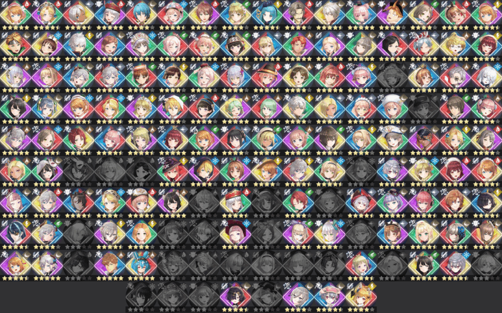 ここ最近はSteam版でのキャラ排出率が良いので、今年の水着イベント以降はララ様以外持っていますが、それ以前のスマホ版とかで回していたガチャの分とかは結構歯抜けになってますね。