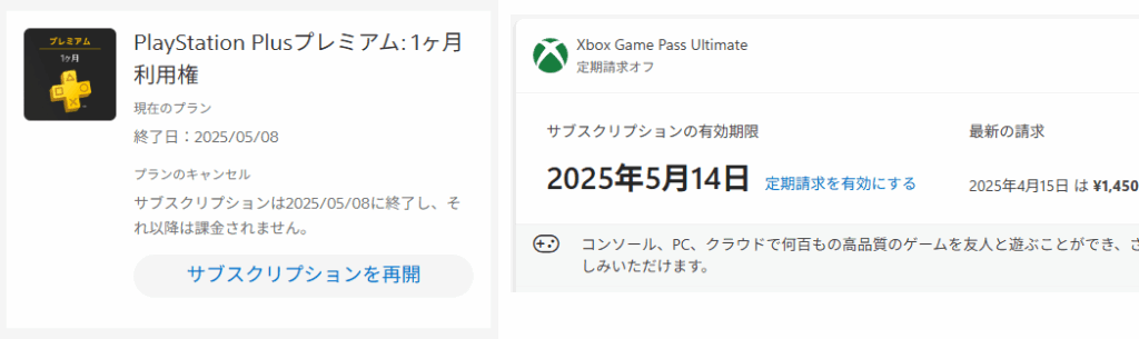 Game PassはPCにも対応していますが、洋ゲー主軸という事もあってラインアップに遊びたいものが殆ど無いので5月の更新日で切ることに決めました。