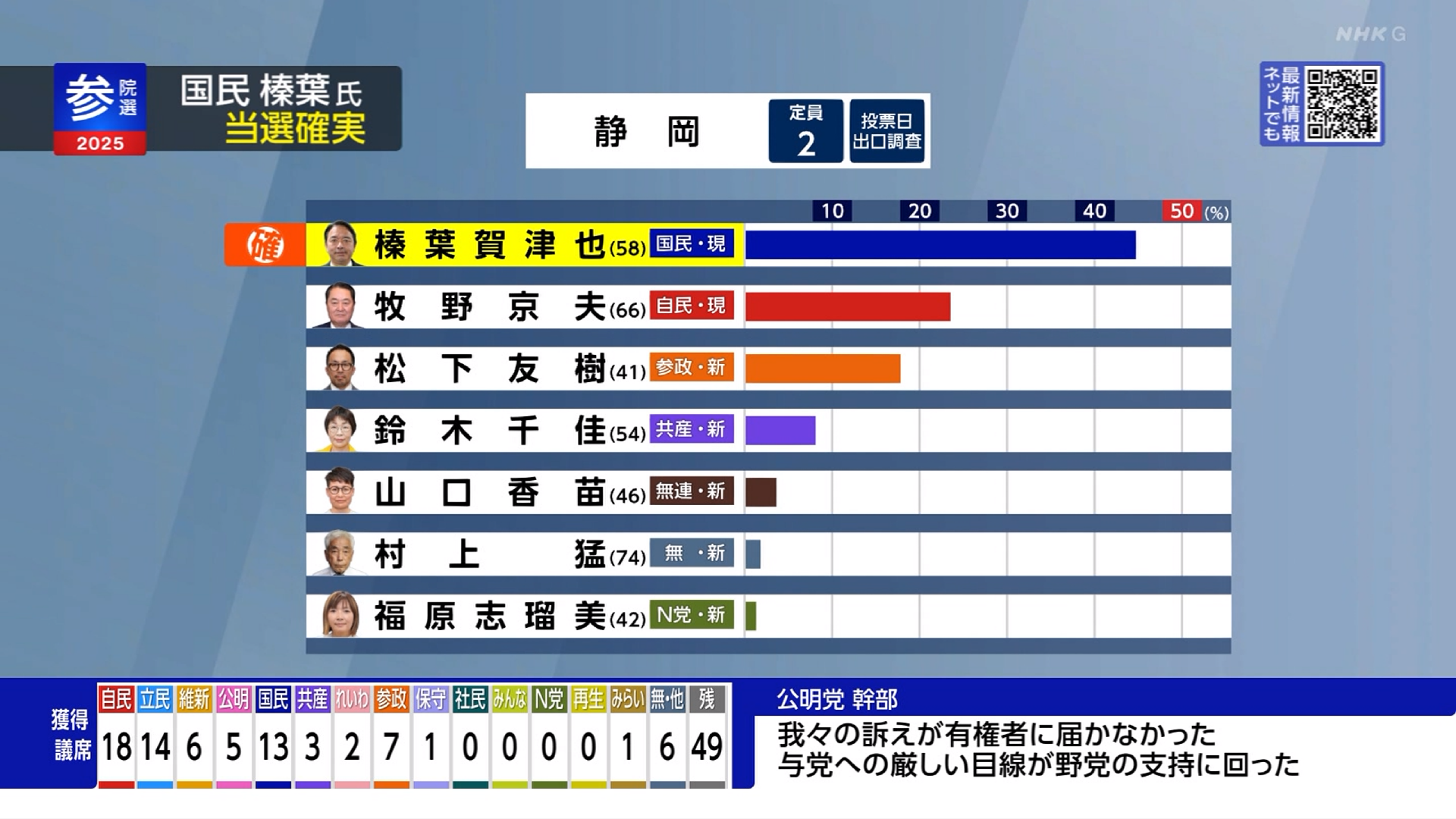 (4位の共産候補がこれだけ伸びるというのもあまり解せない気はありますけど。国民の生活向上なんて本気で考えてないですよ、あの人たち。)
